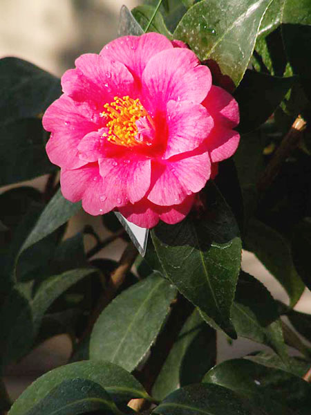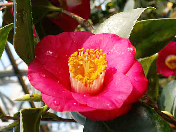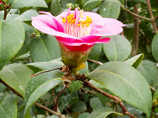Листки прості, еліптичні аж до широко- та продовгувато-яйцевидних, шкірясті, глянцуваті, загострені чи тупі, по одному, інколи по 2-3, розміщуються по черзі на коротких черешках. Квітки поодинокі, пелюстки зрослі біля основи, рожеві, червоні, білі чи строкаті, тичинки численні.