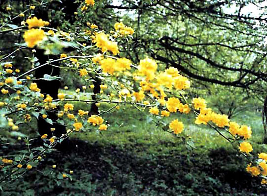 Надзвичайно гарна квітуча алея з хеномелесів (Chaenomeles japonica Lindl. та Chaenomeles maulei (Mast.) C.K. Snheid.) – починаючи з кінця квітня; трохи пізніше милують око білосніжні хмаринки цвіту Екзохорд (Exochorda Lindl.) та жовті китиці Керіі японської махровоквіткової. З початку травня екзотичні яблуні, вишні та груші, завдяки пурпуровим листкам в окремих та білорожевим численним квітам. А таволги квітують починаючи з ранньої весни (білоквіткові) до кінця літа (рожевоквіткові). Окрім цього, серед них можна побачити гарні декоративні форми з різним забарвленням та формою листків як навесні, так під час осінньої зміни кольорів. (Таволга японська золотиста, т.я. золотисте полум’я, т.я. широколиста). Також серед них є як карликові (сланкі) – близько 20 – 30 см, так і великі кущі – до 4 – 5 м заввишки.